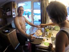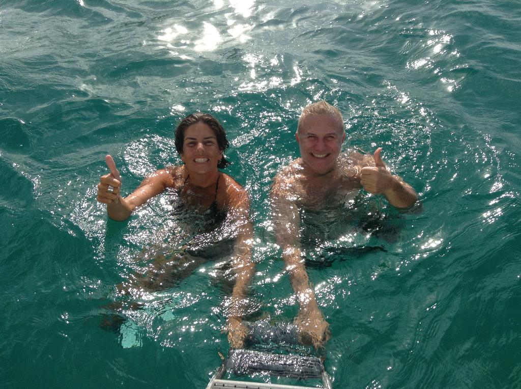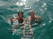 Die Wassertemperatur liegt durchschnittlich bei 29 Grad ... manchmal etwas zu kalt für AL. Silvesterparty im Lazy Turtle in der Tyrell Bay mit Thunfisch und Knoblibrot.