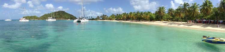 Ankern in der traumhaften "Salt Whistle Bay" auf Mayreau, ein Paradies. Nachts besuchen uns die Fledermäuse.