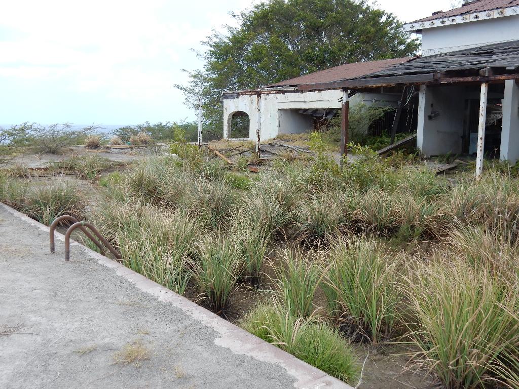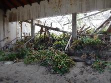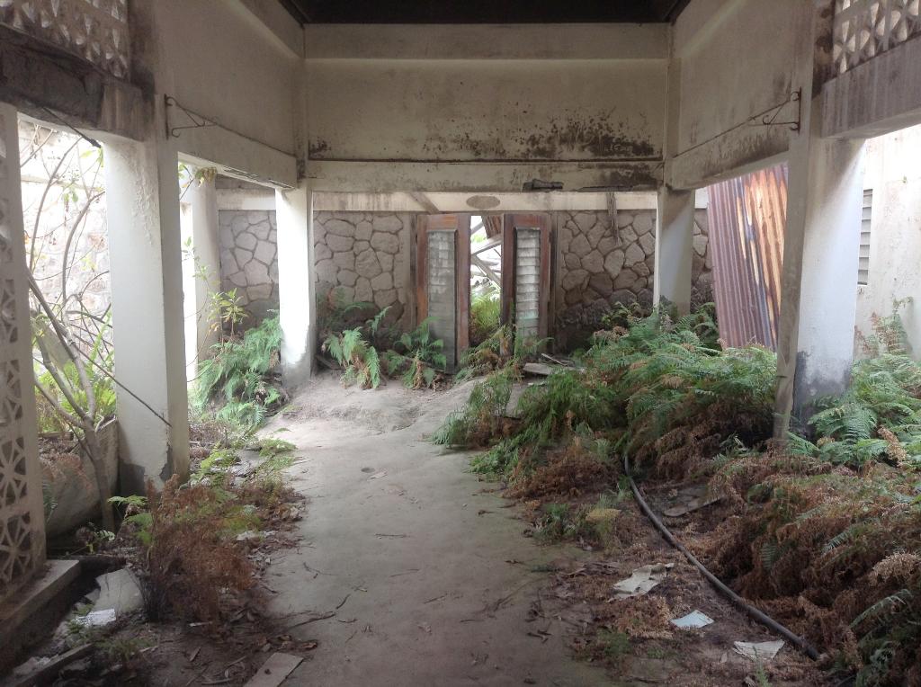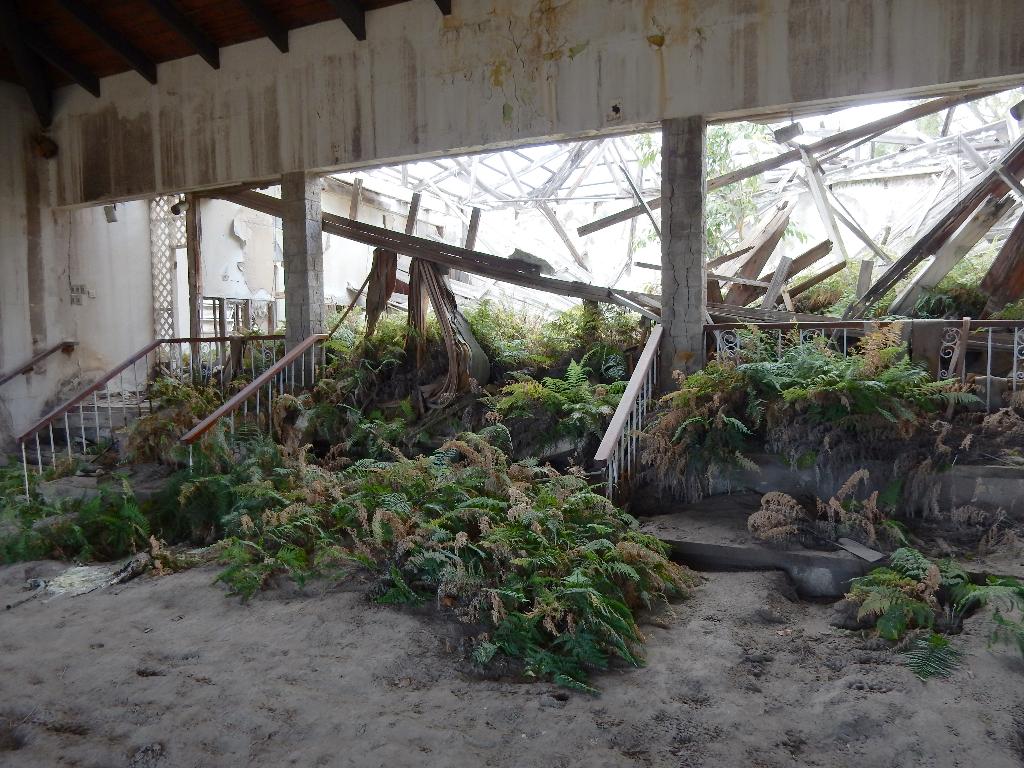 Besichtigung eines zerstörten Hotels, dass kurz vor dem Vulkanausbruch neu renoviert worden ist. Dies ist überhaupt nicht mehr zu sehen. Alles ist voller Schutt und Asche und die Pflanzen beginnen in den Räumen zu wachsen.