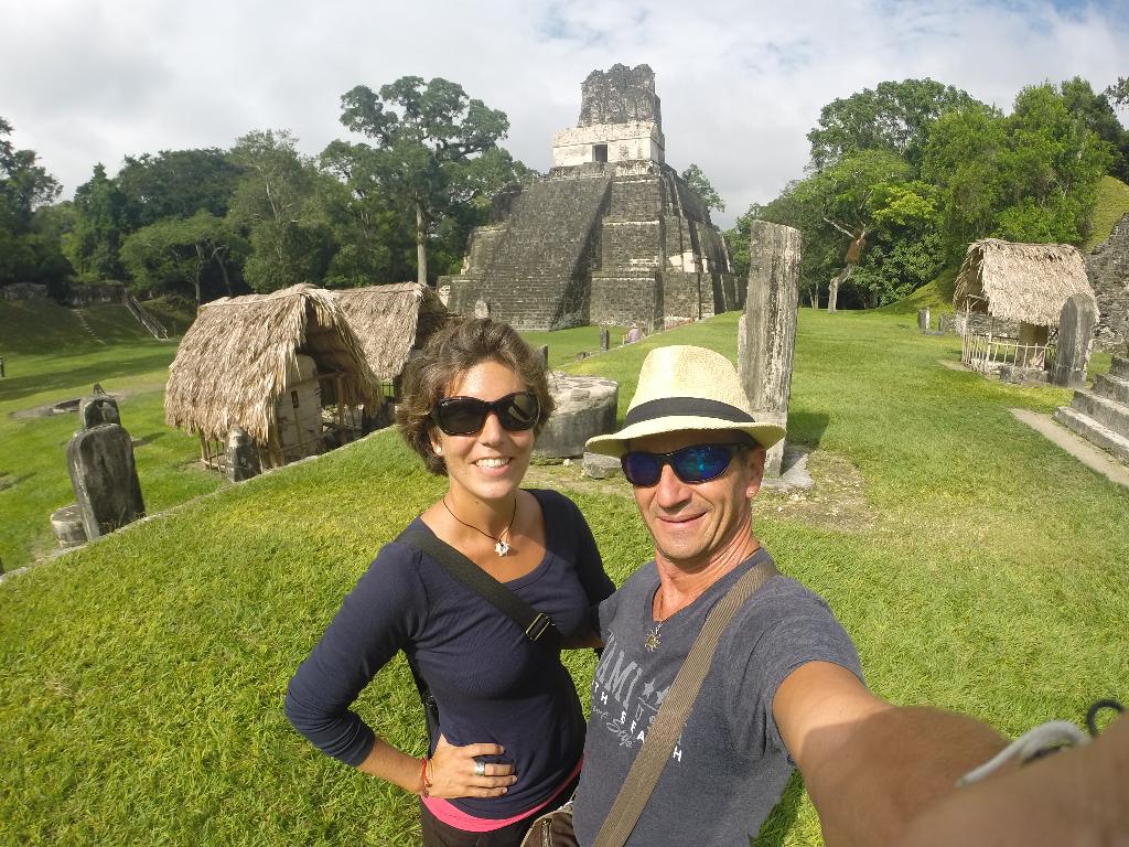 TIKAL - Mayaruinen im Dschungel in Flores. Frühmorgens sehen wir Wildtiere, den Graufuchs und auch eine Tarantel.