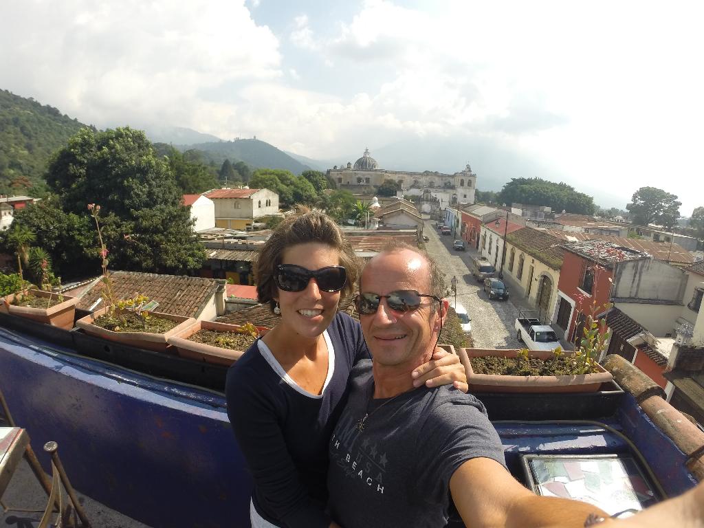 Antigua - Eine wunderschöne Kolonialstadt. Wir bleiben gleich vier Wochen bei unseren Gasteltern Elvira und Enrique und helfen bei einem Hausbauprojekt. Am Schluss besuchen wir noch einen Spanischkurs und lernen fleissig.
