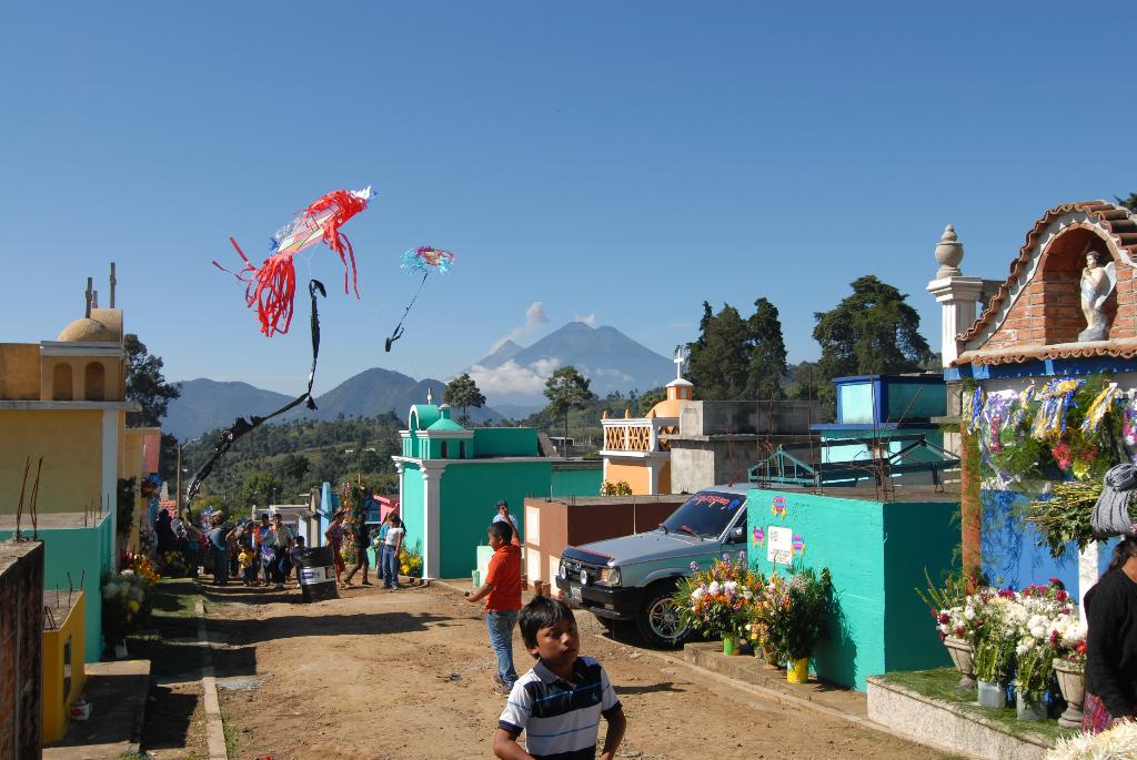 In Sumpango findet ein Drachenfestival "festival de los barriletes" statt. Die selbstgemachten Papierdrachen haben einen Durchmesser bis zu 10m. Wer hat den schönsten Drachen? Wer kann seinen Drachen am Längsten oben halten und wieder ganz auf den Boden bringen?