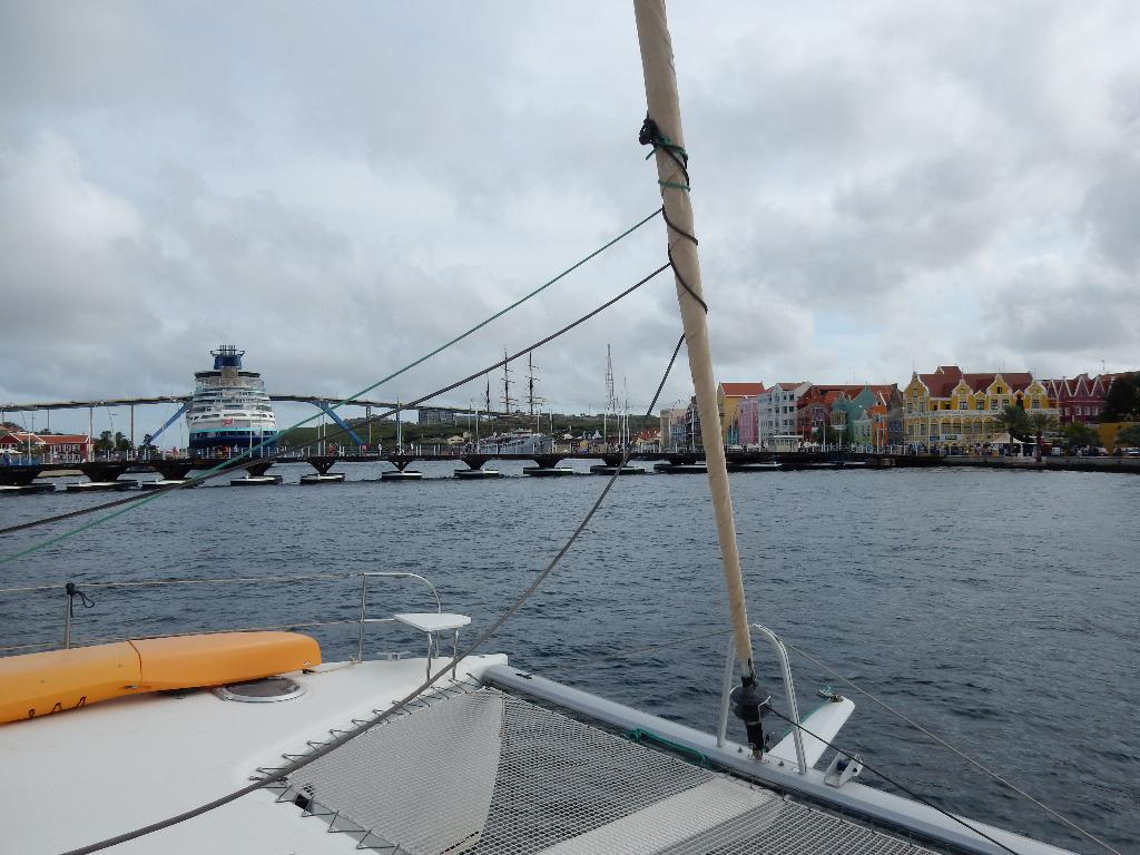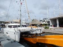 Wir fahren in eine andere Marina, um die MAKANI aus dem Wasser zu heben. Die Brücke wird extra für uns geöffnet.