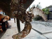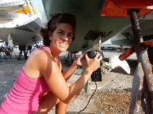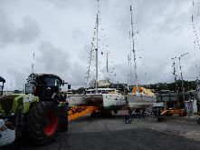 Das erste Mal wird MAKANI aus dem Wasser gehoben und betritt Land. Die Propeller sehen ziemlich schmutzig aus, dank dem Hochdruckreiniger geht dies glücklicherweise gut und schnell weg.