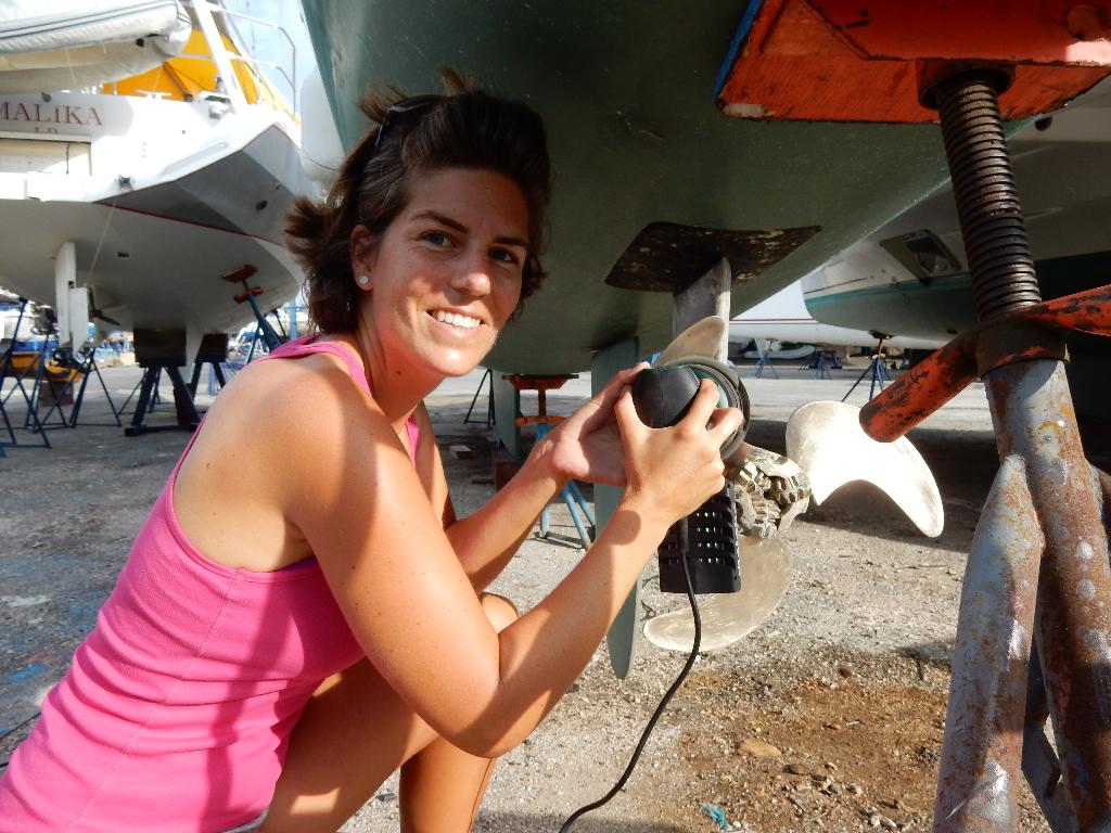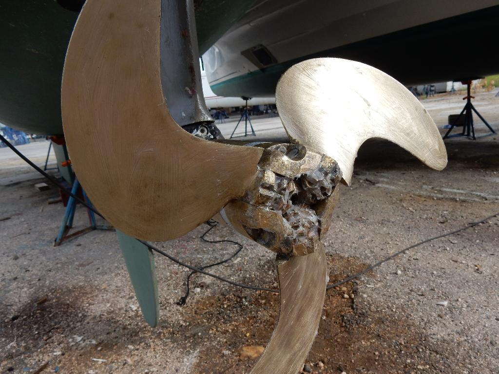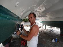 Trotzdem bleiben uns ein paar Feinarbeiten nicht erspart - Propeller polieren, kleine Löcher mit Gelcoat füllen und abschleifen...