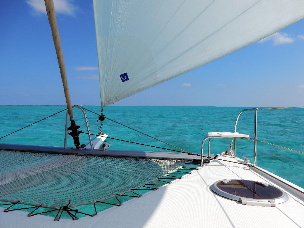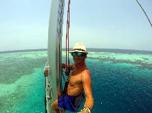 Wir besuchen die Inseln und schauen mal vom Mast, wie farbig das Meer ist!