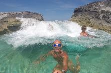 Auch unter Wasser, ein notgelandetes Drogenkurierflugzeug, die Meerjungfauf bei der David Copperfieldinsel (ja, dem Zauberer gehört die Insel ;) und wir schnorcheln in die Thunderballhöhle, wo 1967 James Bond THUNDERBALL gedreht wurde!
